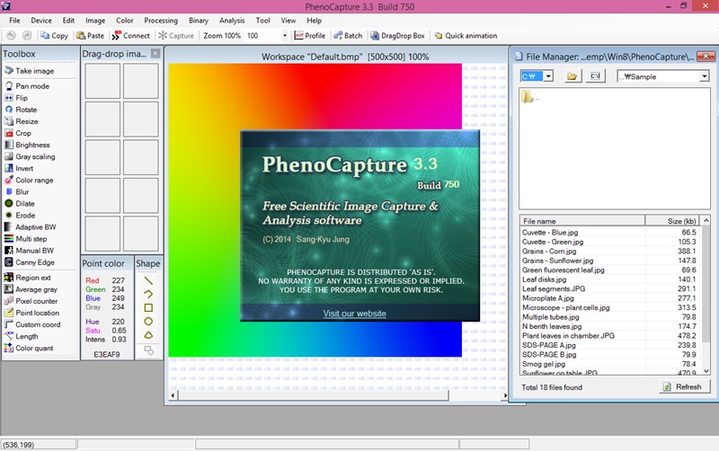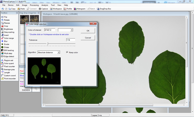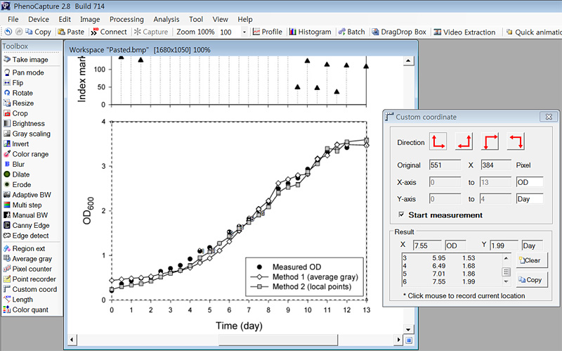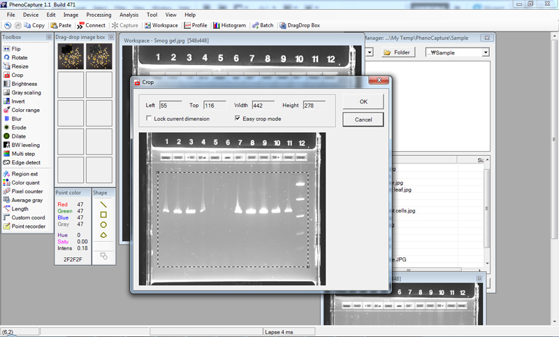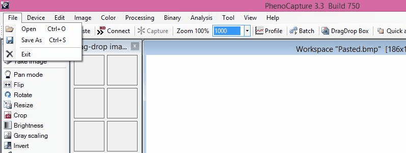 Note: images may not show the latest PhenoCapture software, which can be updated any time.
