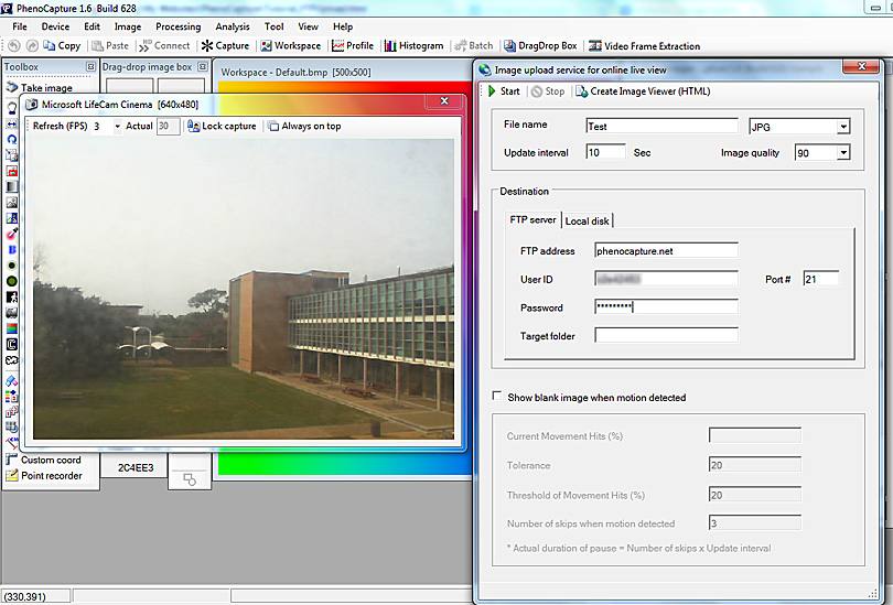 Image upload service to ftp server for online live view