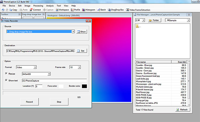 2. Select '1. Drag-drop image file box' and then click on the 'Show' button in the 'Video Recorder' window. Alternatively, you may click on the 'DragDrop Box' in the main toolbar menu.