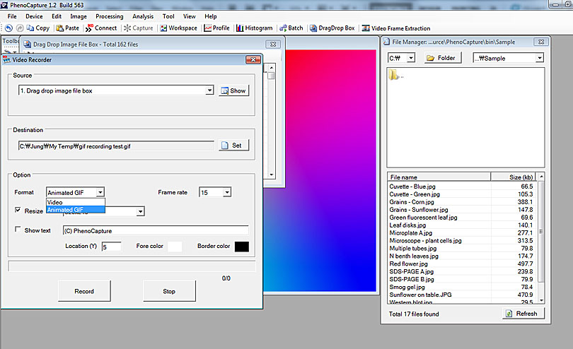 5. Click on the 'Set' button in the 'Video Recorder' window and then set a file name. 6. Select 'Animated GIF' in the Option in the 'Video Recorder' window.
