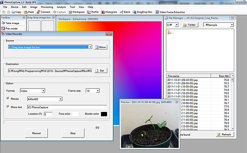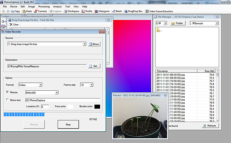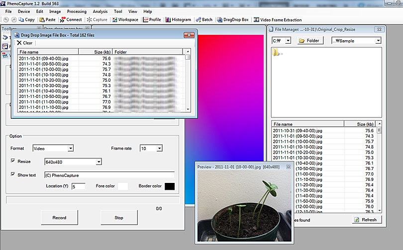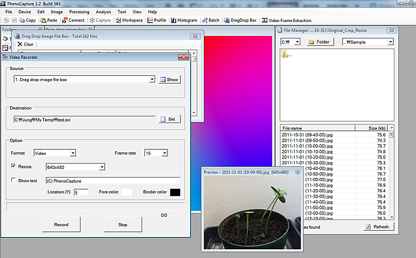 1. Click on the 'Create Video or Animated Gif file from images' in the Menu > Tool. 2. Select '1. Drag-drop image file box' and then click on the 'Show' button in the 'Video Recorder' window. Alternatively, you may click on the 'DragDrop Box' in the main toolbar menu.
