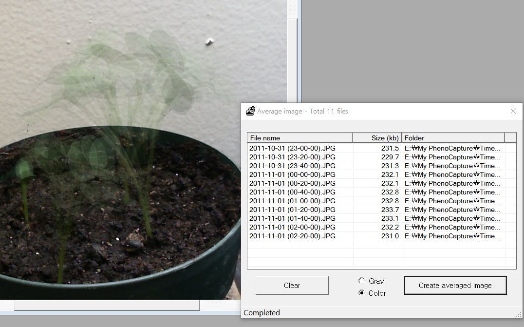o The "Average image" function creates an average image from multiple images. Users can set whether the average image they want to create is color or gray.